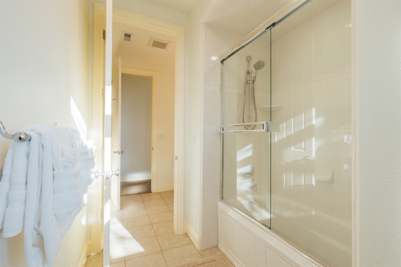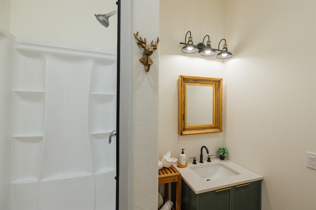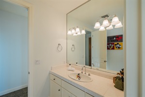 Bathroom 2: Split into two separate sections to maximize utility for guests in Bedrooms 3 and 4.