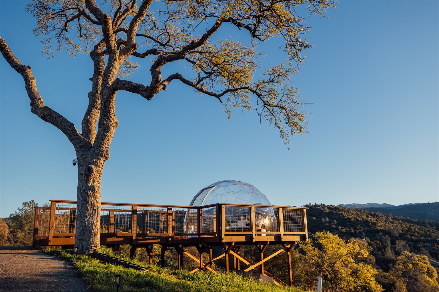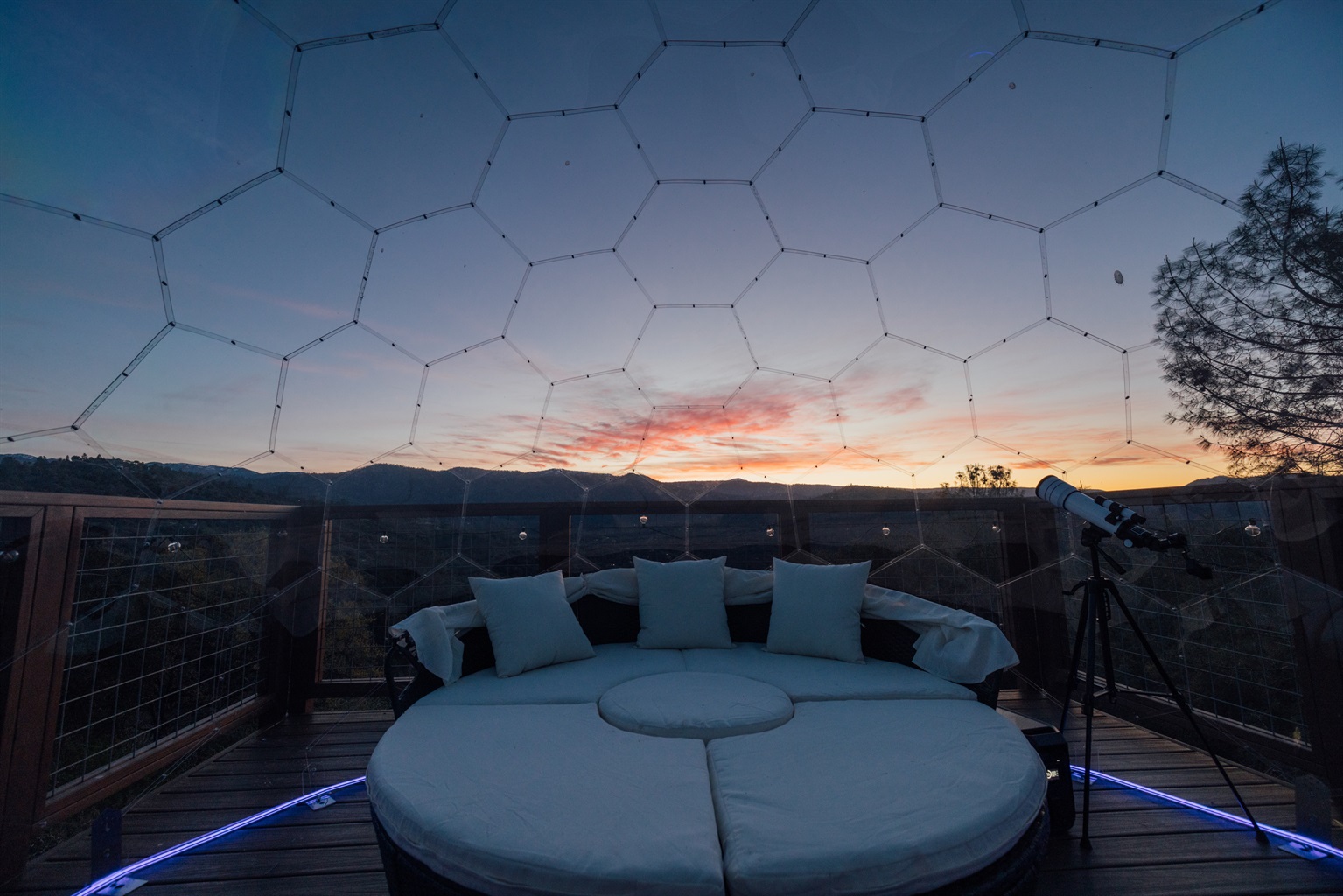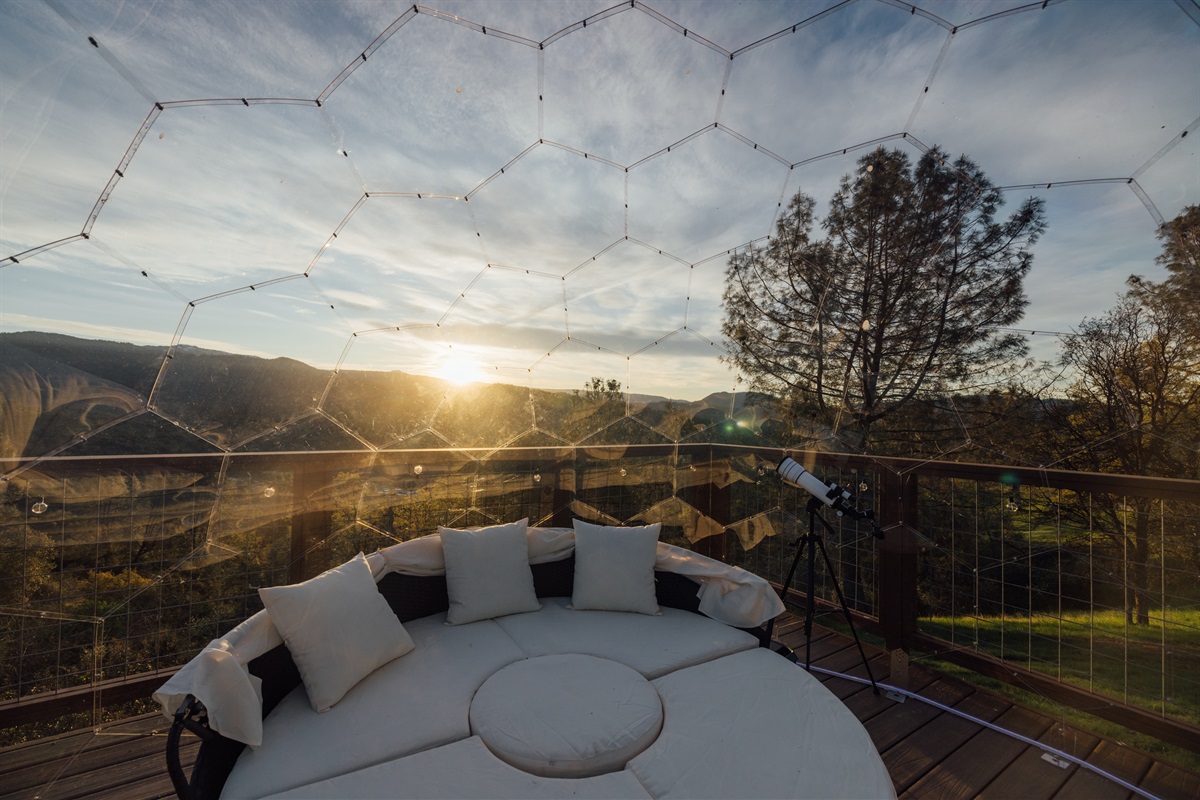►The Geo-Dome: Perched on a floating deck for the best panoramic views and nighttime stargazing.